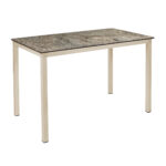 Praktična in okrasna miza z možnostjo izbire mizne plošče in podstavka. Kombinirajte ga z različnimi modeli in barvami stolov ter poživite svoj prostor. Zaradi enostavne trajnosti in materialov, odpornih na različne vremenske vplive, je primeren za gostinske lokale in zunanje prostore.