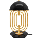 Namizna svetilka Bottega je osupljiva namizna svetilka, ki izžareva sodoben glamur. Ta svetilka je izdelana iz zlatega jekla in ima eleganten dizajn s črnim senčnikom, ki pod seboj skriva vir svetlobe. Popolna za uporabo kot nočna lučka ali elegantna notranja dekoracija, Bottega je funkcionalna in estetsko prijetna.