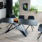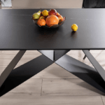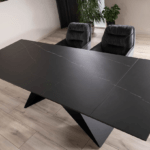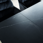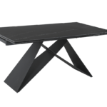 Najnovejša pridobitev v kolekciji keramičnih miz Naya! Miza dimenzij 160(240) x 90 z dvoslojno ploščo iz kaljenega stekla in italijanske keramike bo poskrbela za zbirališče vaše jedilnice. Namizna deska je tokrat v mat črni barvi, posejan z diskretno imitacijo marmorja, dodatno trdnost in stabilnost pa mu bo dala že znana podlaga.