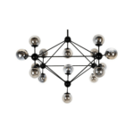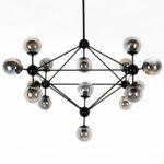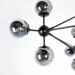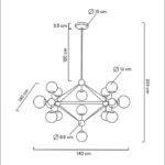 Obesek Astrifero je izdelan iz črne kovine, dopolnjen s 15 okroglimi steklenimi senčniki v zatemnjeni barvi. Višino armature nastavite s 3 kovinskimi vijačnimi palicami dolžine 2 x 50 cm in 1 x 20 cm. Na senčniku se lahko pojavijo zračni mehurčki, ki so naravni učinek ročne obdelave stekla.
