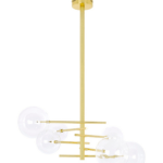 Viseča svetilka Astro je izdelana iz sferičnih steklenih senčnikov, nameščenih na strukturo iz brušenega aluminija zlate barve. Struktura je sestavljena iz elementov, ki omogočajo prilagajanje višine celotne svetilke, v notranjosti vsakega senčila pa je vir svetlobe G4. Astro nudi ustrezno notranjo osvetlitev in ustvarja prijeten in eleganten učinek. Na senčniku se lahko pojavijo zračni mehurčki, ki so naravni učinek ročne obdelave stekla.