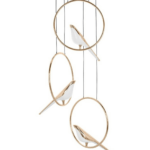 Obesek Bird Disc je sestavljen iz treh figur ptic, obešenih na zlate plošče s črnim kablom, na katerega so pritrjene. Ta svetilka, izdelana iz kombinacije akrila in kovine, vam omogoča ustvarjanje edinstvenih, igrivih aranžmajev.