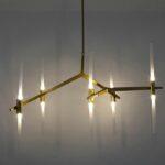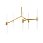 Obesek Candelabr ima zanimiv dizajn, ki spominja na drevesne veje. Konstrukcijo sestavljajo ukrivljene aluminijaste roke v zlati barvi s steklenimi, satenastimi odtenki.