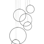 Obesek Ciruclo Six je preprosta in funkcionalna svetilka iz kombinacije kovine in aluminija. Circulo je sestavljen iz šestih svetilk različnih premerov, kaskadno obešenih na en stropni kabel. Univerzalna barva in zanimiv dizajn se bosta odlično podala v klasično in moderno notranjost.