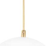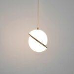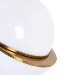 Obesek Globe je izdelan iz kombinacije zlate kovine in sferičnega senčnika iz sijočega mlečnega akrila. Senčnik iz dveh polkrogel, obdelanih z brušeno kovino, skriva vir svetlobe in visi na zlatem kablu v tekstilni pletenici. Ta svetilka je odlična izbira za ljubitelje nenavadnega dizajna.
