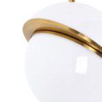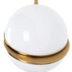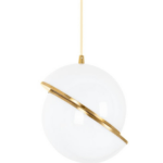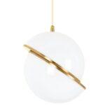 Obesek Globe je izdelan iz kombinacije zlate kovine in sferičnega senčnika iz sijočega mlečnega akrila. Senčnik iz dveh polkrogel, obdelanih z brušeno kovino, skriva vir svetlobe in visi na zlatem kablu v tekstilni pletenici. Ta svetilka je odlična izbira za ljubitelje nenavadnega dizajna.