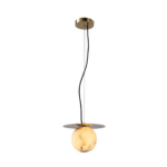 Obesek Halo je izdelan iz kombinacije zlato obarvanega nerjavečega jekla in sferičnega senčila iz alabastra. Senčnik je izdelan iz alabastra in skriva LED svetlobni vir. Ta svetilka bo popoln dodatek k notranjosti stanovanjskih in gostinskih ter hotelskih prostorov.