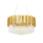Obesek Imperial ima eleganten pokrov senčnika iz brušenega jekla v zlati barvi, znotraj katerega visijo kristali, ki skrivajo vir svetlobe. Okrogla oblika svetilke, kombinacija zlata in steklenih kristalov zagotavlja optimalno osvetlitev prostora.
