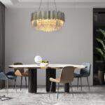 Obesek Imperial ima eleganten pokrov senčnika iz brušenega jekla v zlati barvi, znotraj katerega visijo kristali, ki skrivajo vir svetlobe. Okrogla oblika svetilke, kombinacija zlata in steklenih kristalov zagotavlja optimalno osvetlitev prostora.