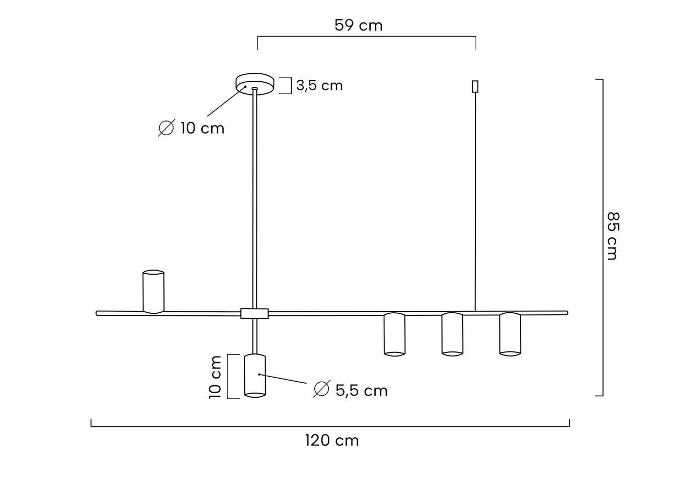 Obesek Moderno je izdelan iz jekla s petimi svetlobnimi točkami. Ta preprosta in moderna svetilka bo praktična osvetlitev za vsako ureditev.