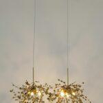 Obesek Monete je estetsko dovršena svetilka, ki pritegne pozornost in spodbuja kreativnost. Struktura svetilke je izdelana iz kovine v sijoči zlati barvi. Dva senčnika spominjata na prgišče kovancev, obešena na prozoren kabel in pravokotno stropno ploščo. Svetila iz kolekcije Monete bodo odličen dodatek nad jedilno mizo ali ekstravaganten element dnevne sobe.