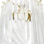 Obesek Murano je izdelan iz steklenih senčnikov, ki se kot pletenice ovijejo okoli v notranjosti skritega vira svetlobe. Vsak senčnik je pritrjen na zlat kovinski obroč, kar ustvarja izjemno elegantno kompozicijo. Svetila iz kolekcije Murano so popolna za tradicionalne in moderne interierje.