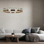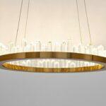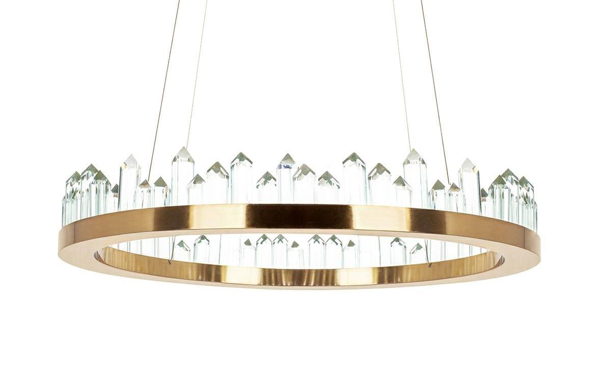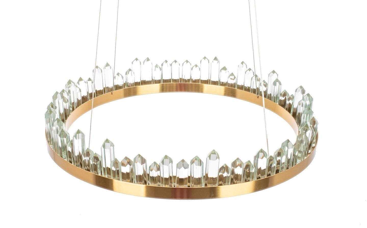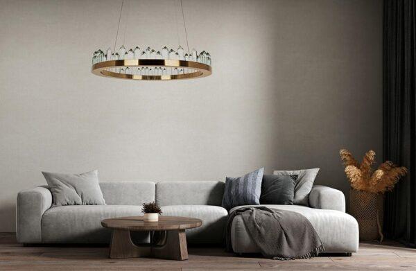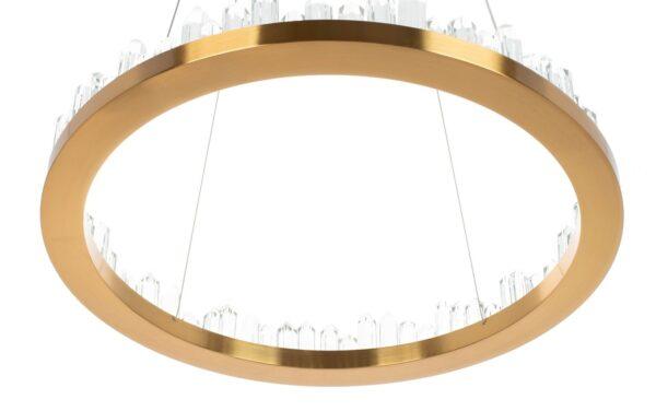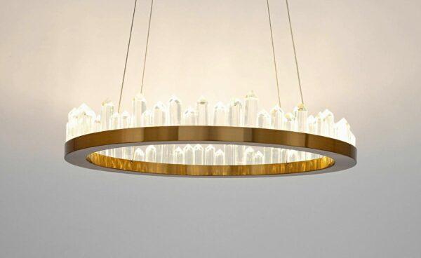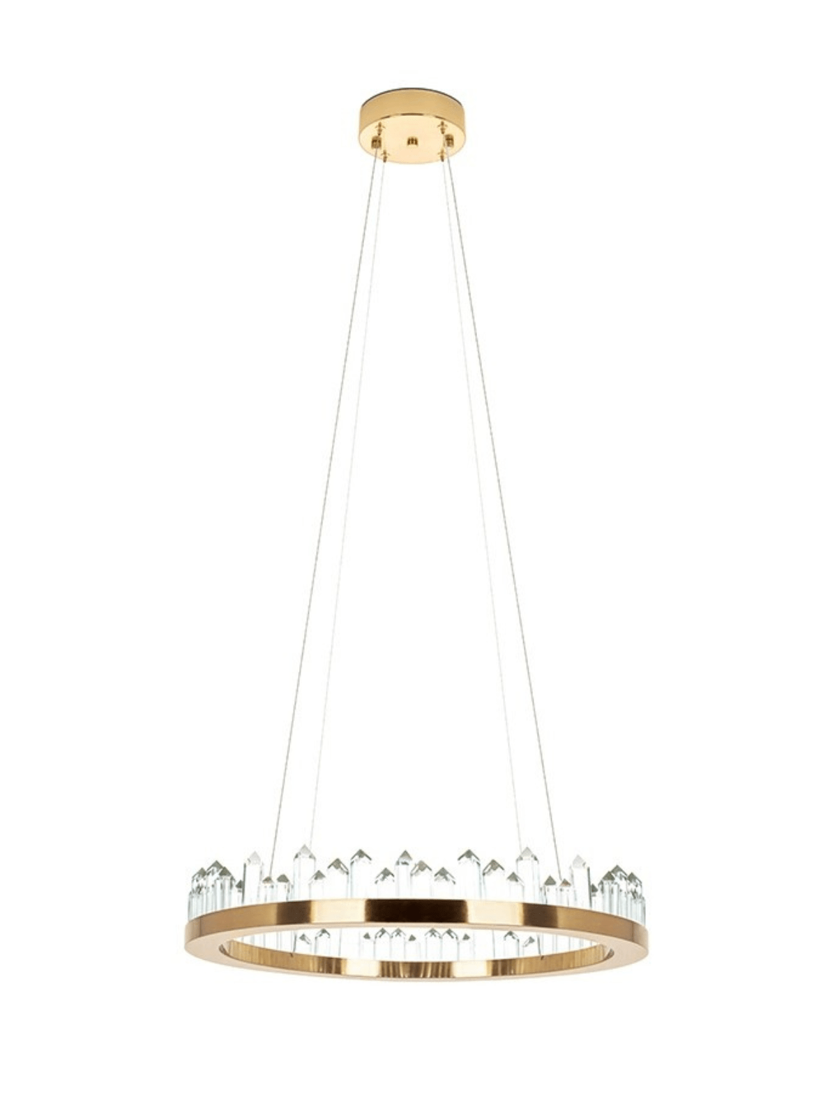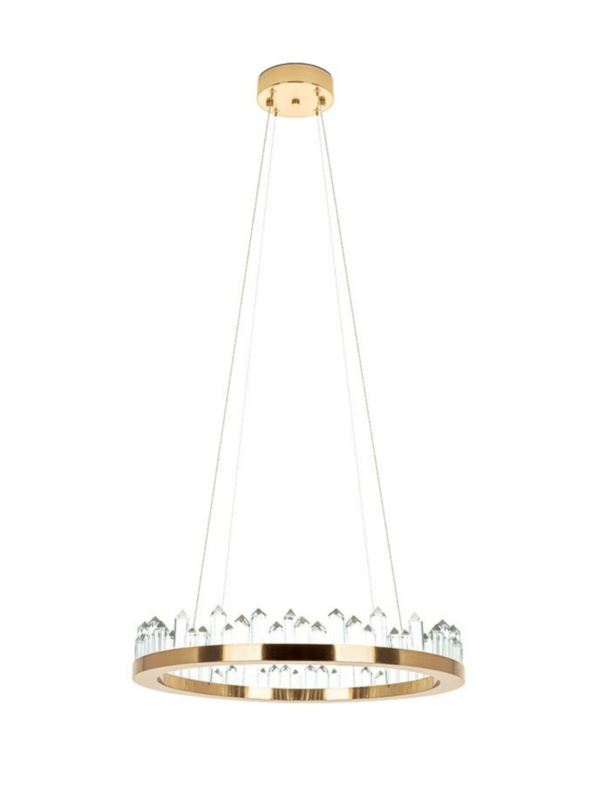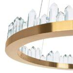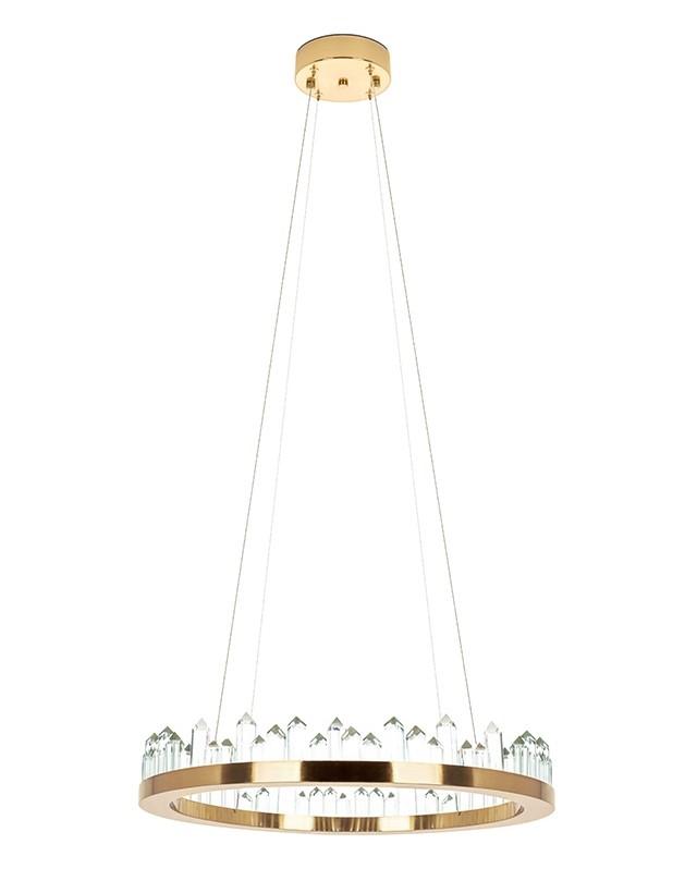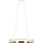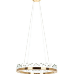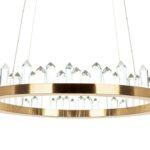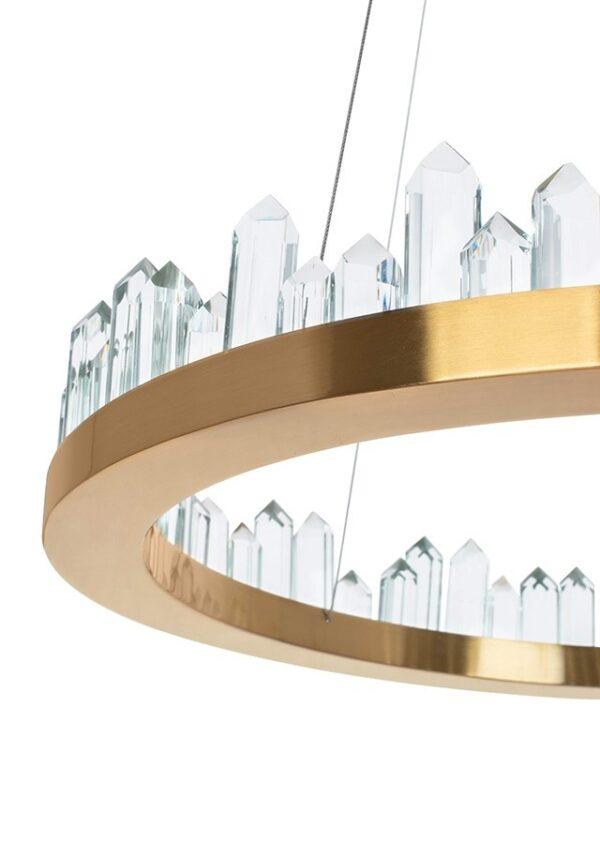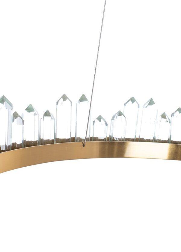 Obesek Nenufar je elegantna svetilka iz kombinacije nerjavečega jekla in steklenih kristalov. LED svetlobni vir, nameščen okoli kovinskega okvirja, osvetljuje kristale in ustvarja svetlobne odseve tople barve.