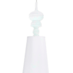 Obesek Queen je sodobna, minimalistična svetilka. Gladki senčnik je izdelan iz umetne mase, okvir svetilke pa iz aluminija. Zaradi preprostosti dizajna je popoln za klasične in glamurozne interierje.