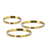 Obesek Ring IV je kombinacija modernih in elegantnih svetilk Ring, ki jih lahko po želji razporedite na eno stropno vrtnico. Obročaste svetilke so narejene iz zlatega nerjavečega jekla in akrilnih pokrovov svetlobnega vira. Obešen v kaskadi na kovinskih kablih bo Ring zagotavljal optimalno osvetlitev in izjemen vizualni vtis.