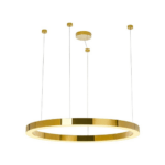 Obesek Ring Luxury je izdelan iz jekla v krom zlati barvi, pokrov senčnika pa iz mlečne plastike. Okrogla oblika in LED svetlobni vir zagotavljata optimalno osvetlitev prostora, svetilka pa se prodaja s svetlobnim virom.