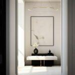 Obesek Ring je izdelan iz nerjavečega jekla, poliranega do visokega sijaja. Prevleka senčnika je izdelana iz mlečne plastike, okrogla oblika in LED svetlobni vir pa zagotavljata optimalno osvetlitev prostora.