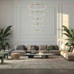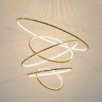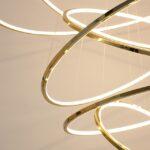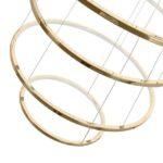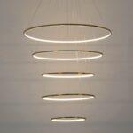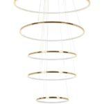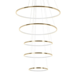 Obesek Ring Slim je brezčasnega videza, sestavljen iz 5 krogov, ki jih lahko obesite v kaskadi ali kateri koli drugi konfiguraciji. Prstan je iz jekla v sijoči zlati barvi, viri svetlobe pa iz akrila. Svetilka Ring Slim bo odlična izbira za tiste, ki cenijo visoko kakovost in sodoben stil.