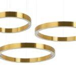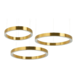 Obesek Ring V je kombinacija modernih in elegantnih svetilk Ring, ki jih lahko po želji razporedite na eno stropno vrtnico. Obročaste svetilke so narejene iz zlatega nerjavečega jekla in akrilnih pokrovov svetlobnega vira. Obešen v kaskadi na kovinskih kablih bo Ring zagotavljal optimalno osvetlitev in izjemen vizualni vtis.