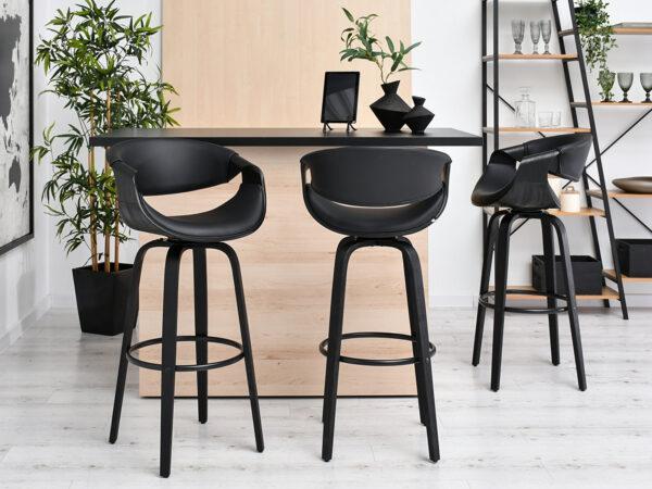 Barski stol Betty II je popolna izbira za ljubitelje industrijskega sloga. Zasnova tega modela bo nedvomno privlačen element v prostoru, kombinacija lesa in eko usnja z zaobljenimi linijami pa bo v vsako notranjost vnesla toplino.