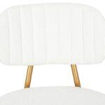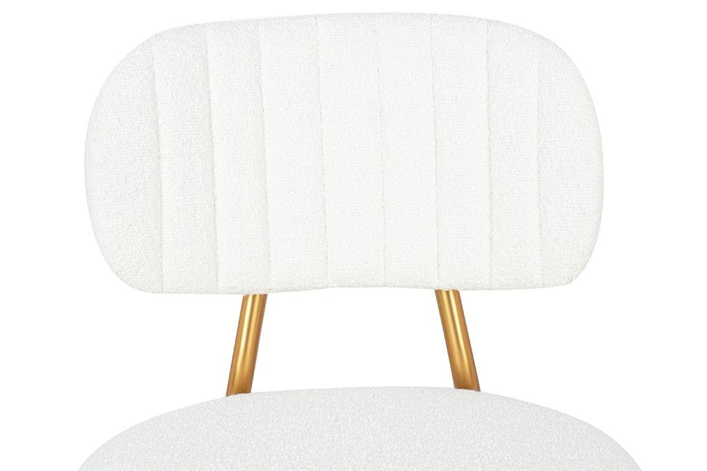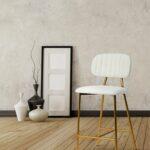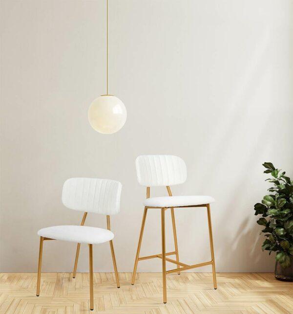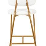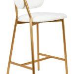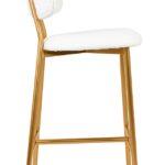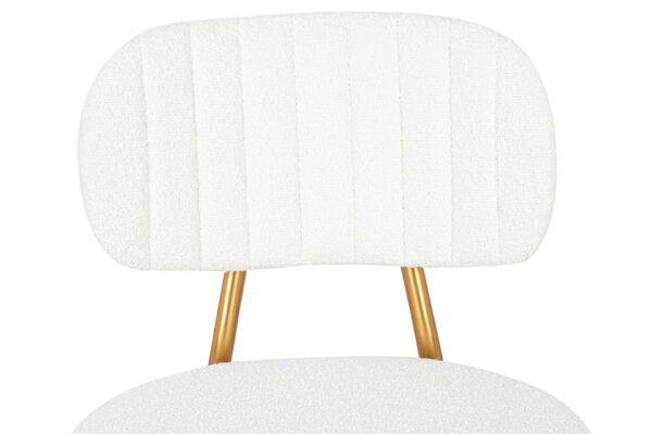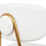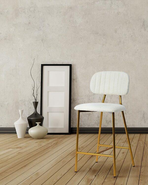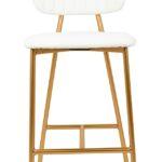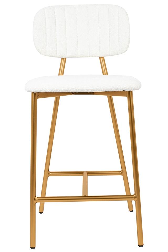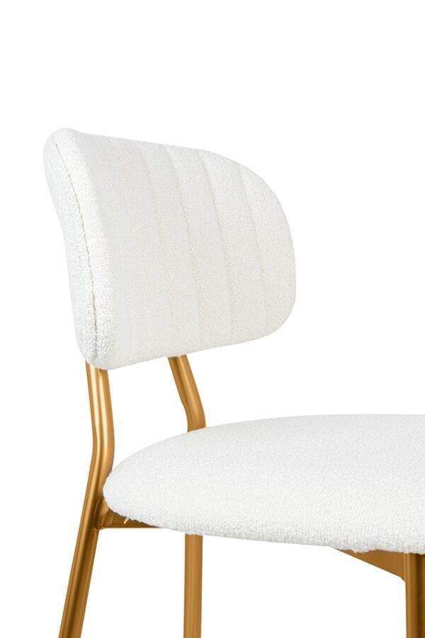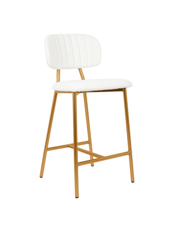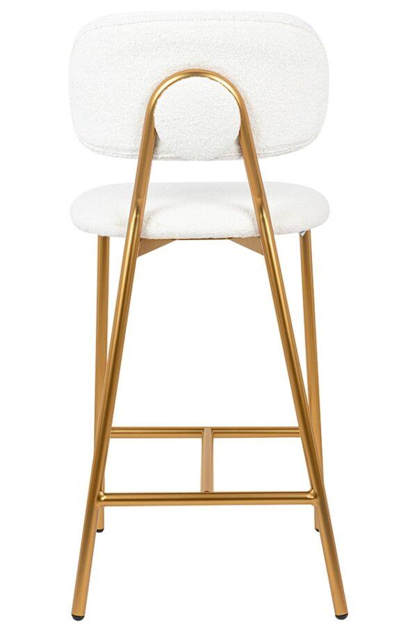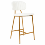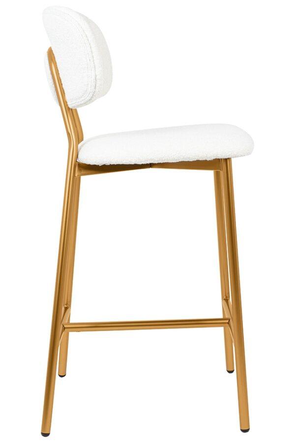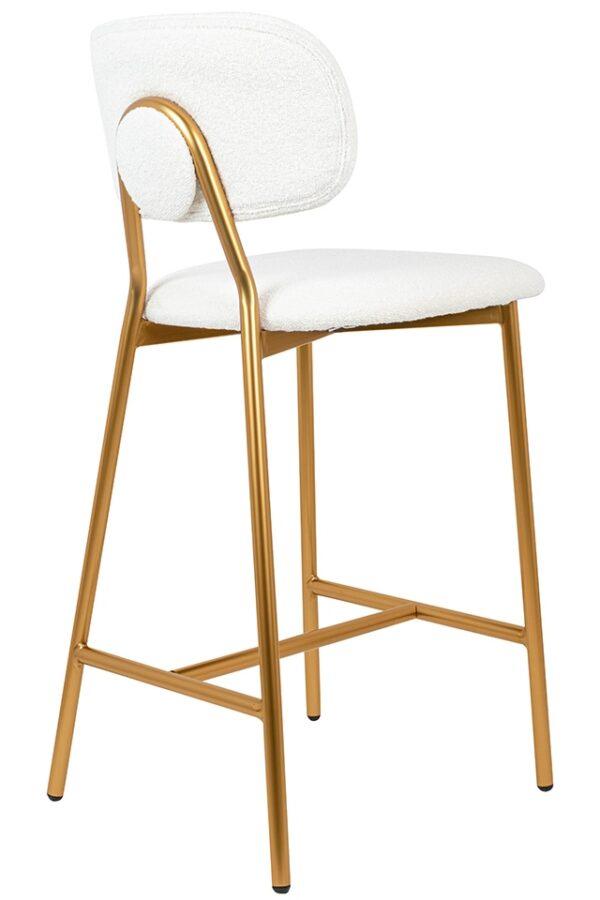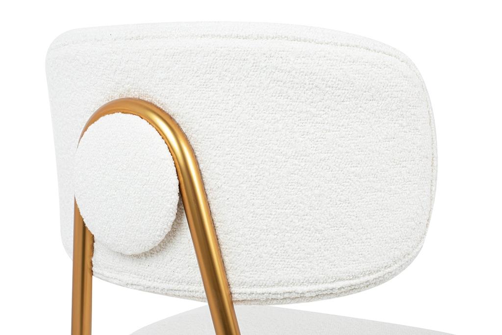 Barski stol Gracia je oblazinjen v prijetno, mehko na dotik buklé tkanino. Podstavek je izdelan iz satenasto zlato lakirane kovine, naslonjalo z značilno zaobljeno strukturo pa poudarja sodoben značaj stola.
