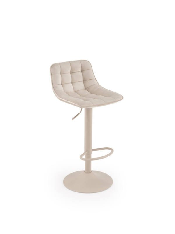 Barski stol s prijetno, prešito tkanino in s črnim rotirajočim ogrodjem bo pristajal v interierje in gostinske objekte.