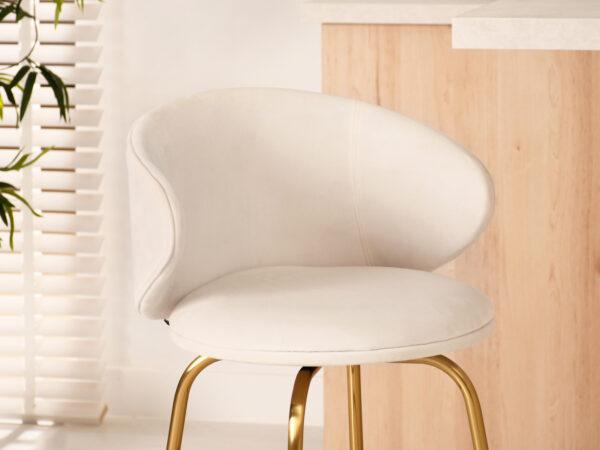 Barski stol Kohut je popoln za ljubitelje ekspresivnega oblikovanja. Oblazinjenje iz kremnega žameta doda pridih topline vsaki notranjosti, vitke črne noge pa zagotavljajo stabilnost.