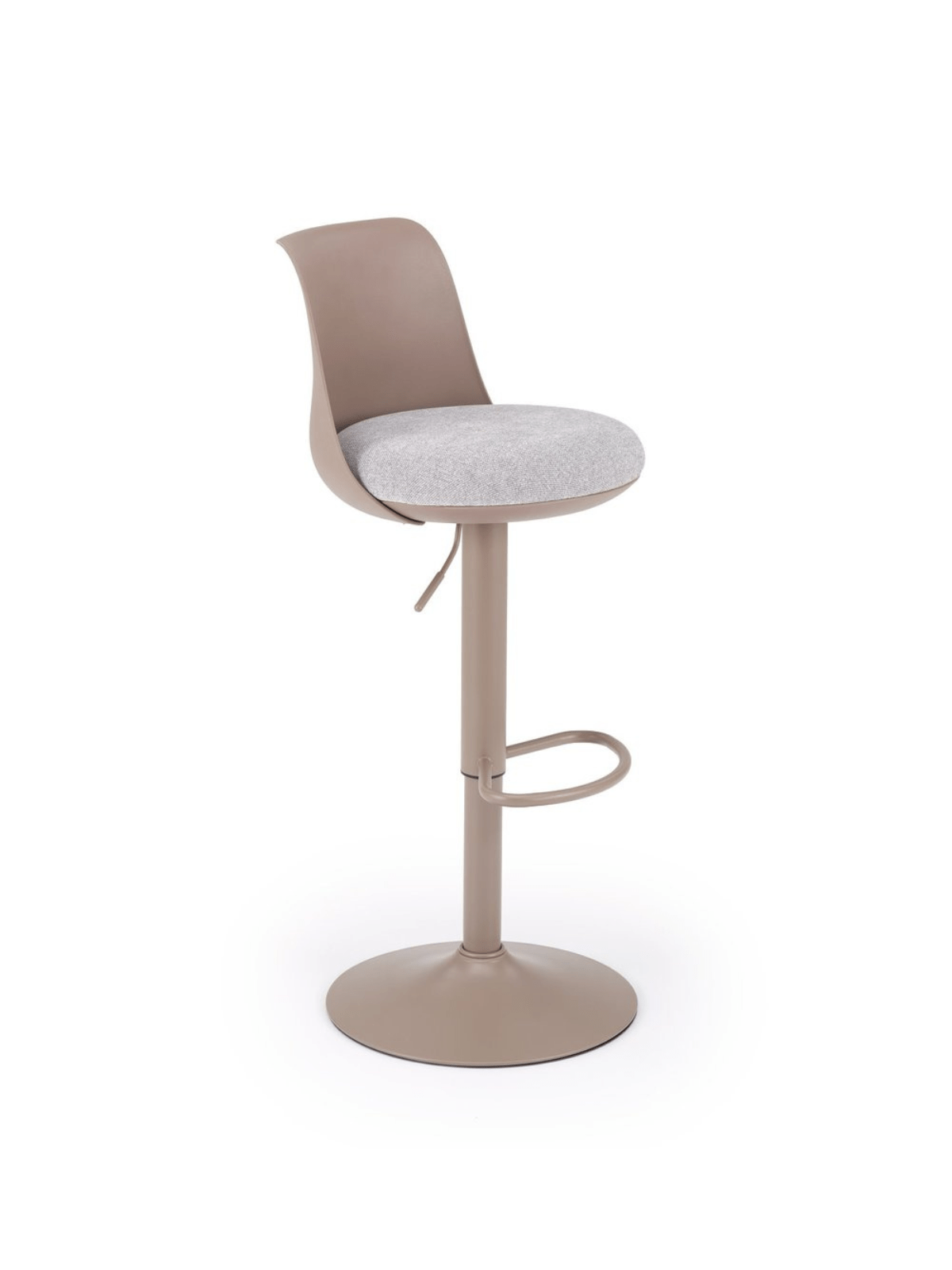 Ova moderna stolica s podesivom visinom i hidrauličkim mehanizmom kombinira funkcionalnost i moderan dizajn. Sjedalo od polipropilena s presvlakom tkanine pruža udobnost, dok baza od čelika s praškastim premazom osigurava stabilnost i izdržljivost.