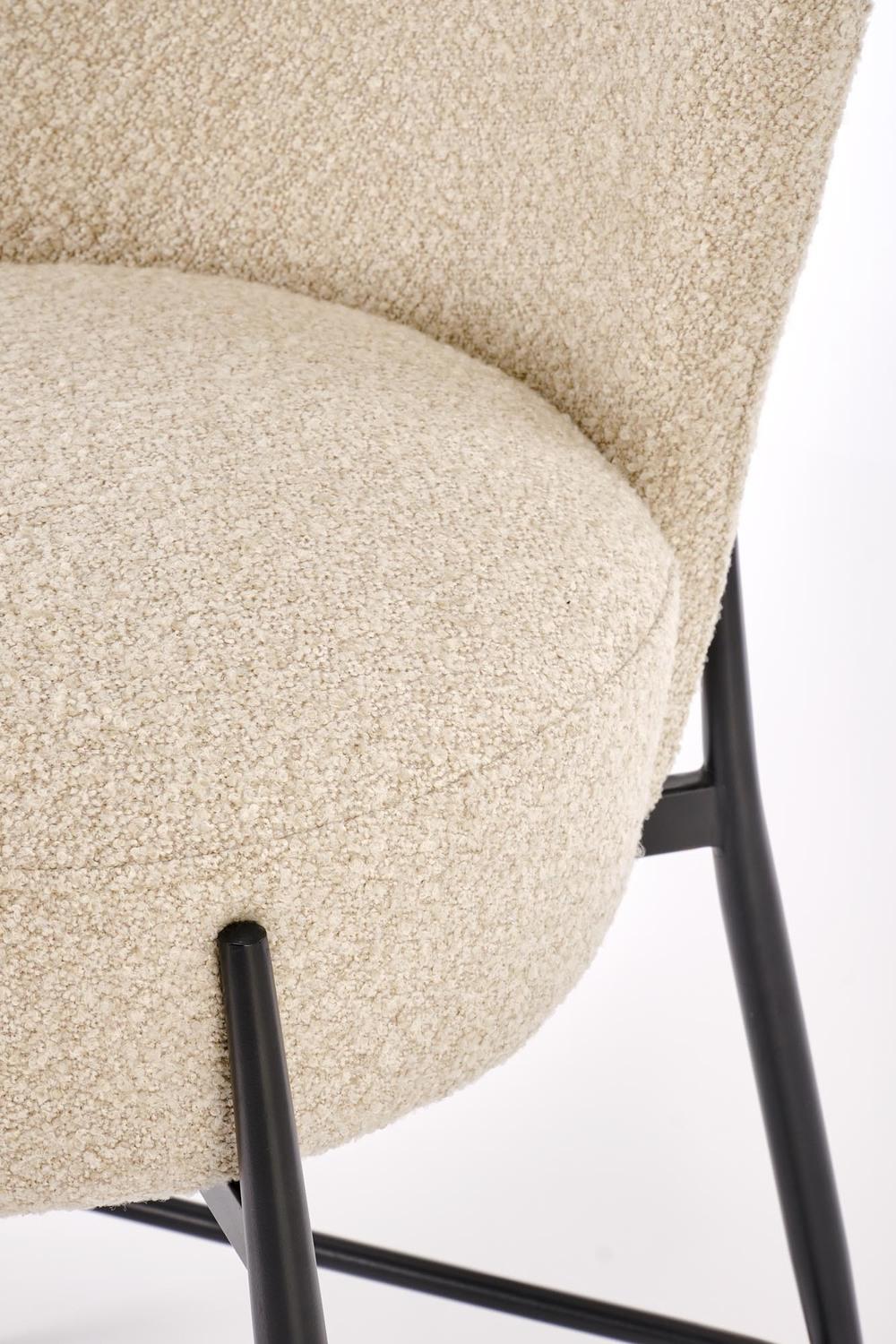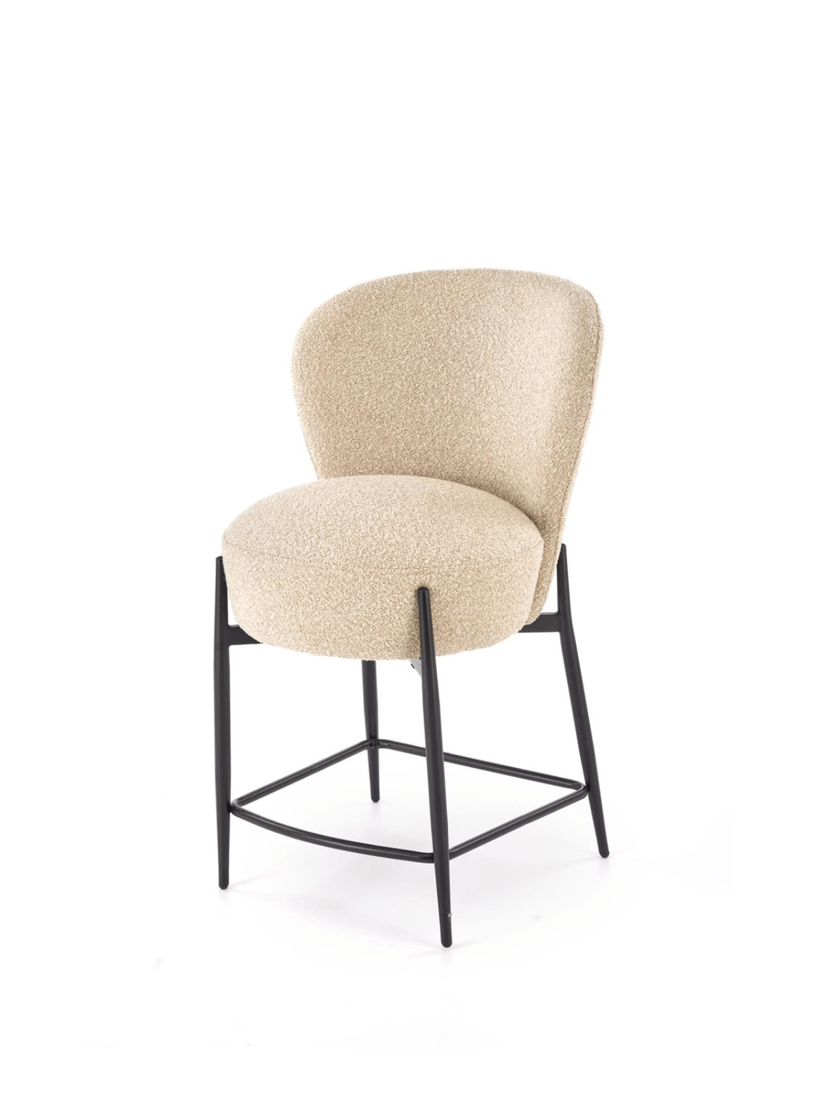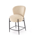 Sodoben dizajn tega lesenega stola je oblazinjen v mehko buklé tkanino, ki zagotavlja prijeten in prefinjen videz. Ergonomska oblika sedeža zagotavlja udobje med sedenjem, stabilna konstrukcija in robustne noge pa zagotavljajo vzdržljivost. Idealna izbira za kuhinjske otoke in moderno notranjo opremo.