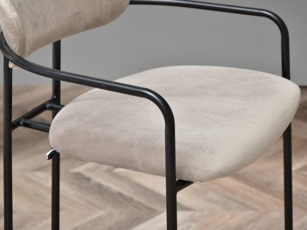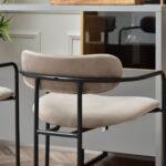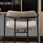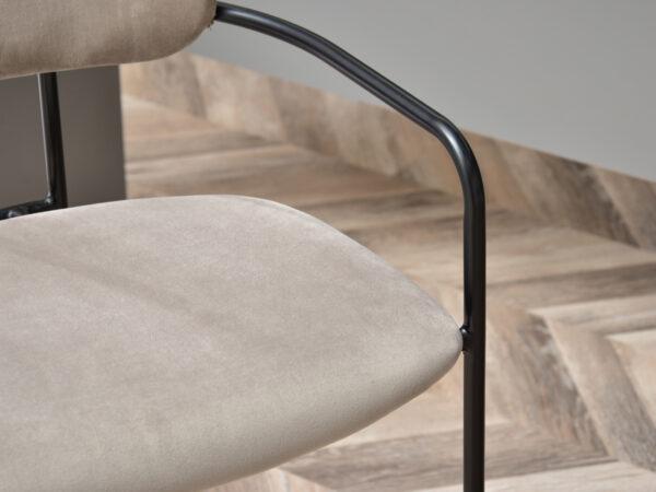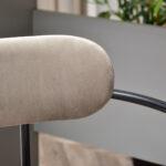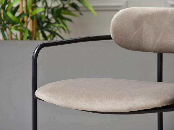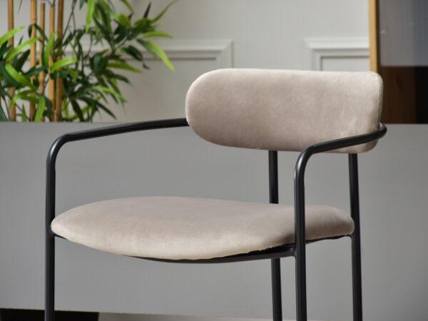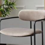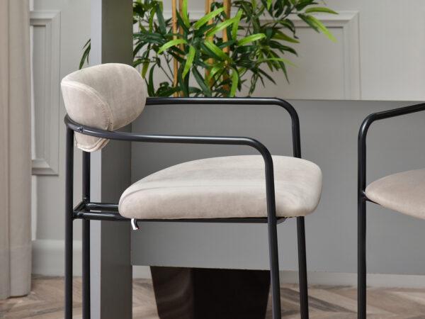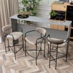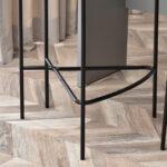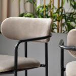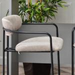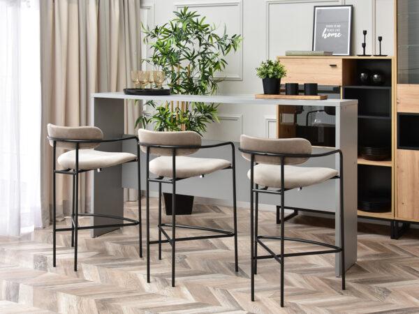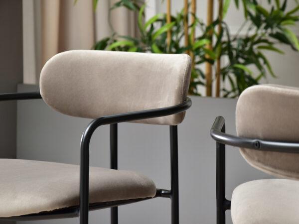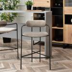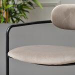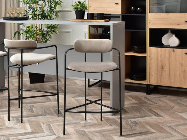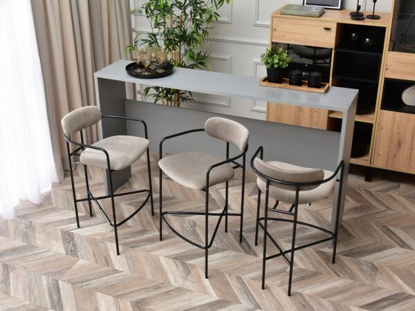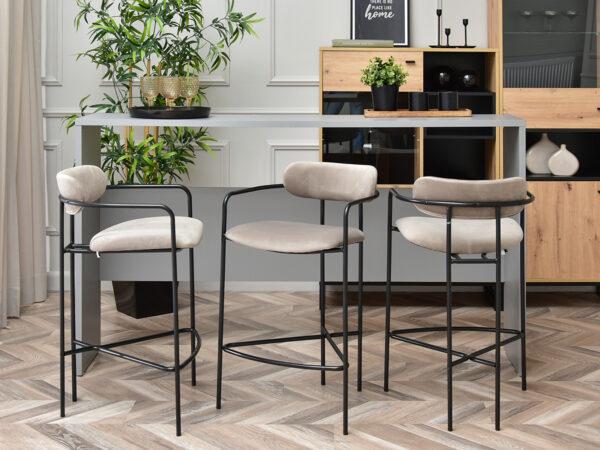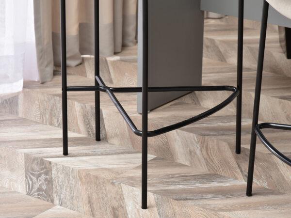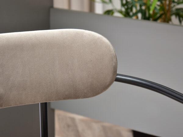 Barski stol Odissa s poudarjeno pravilno konstrukcijo v črni kovini je idealen za vse ljubitelje geometrijskega pohištva, tudi secesijskega. Eleganten stol je na voljo v petih odtenkih oblazinjenega naslona in sedeža.