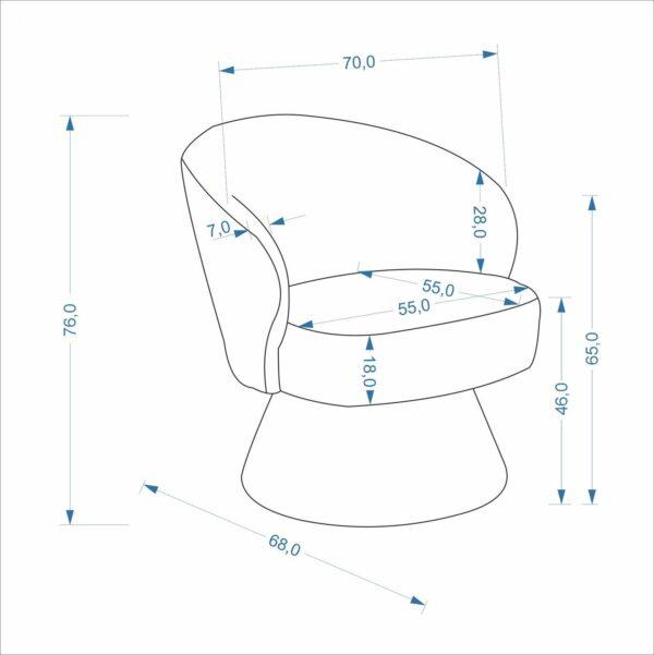 Presenetljivo silhueto naslanjača Lamego zaznamujejo organske krivulje in privlačna oblika. Naslanjač stoji na dobro proporcionalnem zaobljenem podstavku, kar mu daje eleganten videz, hkrati pa je zaradi vrtljive funkcije zelo funkcionalen.