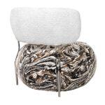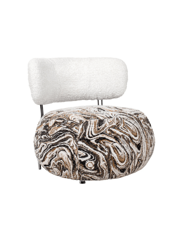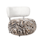Fotelj Ottavia navdušuje s svojo edinstveno estetiko in udobjem. Presenetljiv vzorec sedeža, navdihnjen z marmorjem, združuje nežne odtenke bele, rjave in črne barve ter ustvarja harmonično in elegantno celoto.