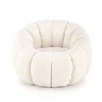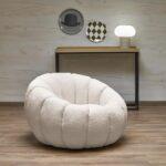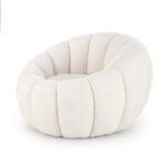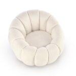 S svojim mehkim oblazinjenjem iz bukleja in zanimivo zaobljeno obliko, ki spominja na odprto rožo, je fotelj Umrell statement piece za dom. Enako dobro se poda v dnevno sobo poleg sedežne garniture ali samostojno kot bralni stol in polepša celotno sobo.