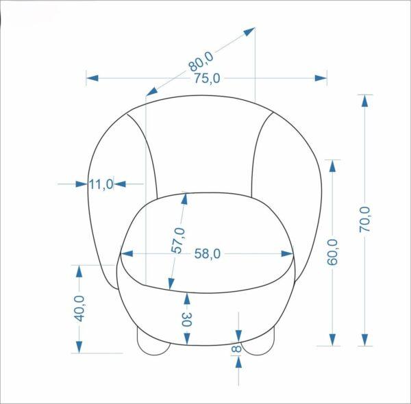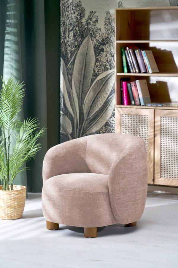 Sodoben fotelj s sodobnim dizajnom odlikujejo zaobljene linije in bogato oblazinjen sedež, ki zagotavlja visoko raven udobja. Oblazinjen je v kakovostno tkanino, ki prispeva k prijetnemu in elegantnemu videzu. Idealna izbira za dnevno sobo ali prostor za sprostitev.
