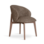 Mehko oblazinjeno sedišče in zaobljeno naslonjalo jedilnega stola Almodovar ustvarjata udoben in ergonomski model, vitka lesena noga, ki nežno podpira naslonjalo, pa stolu daje dizajnerski značaj.