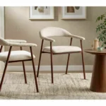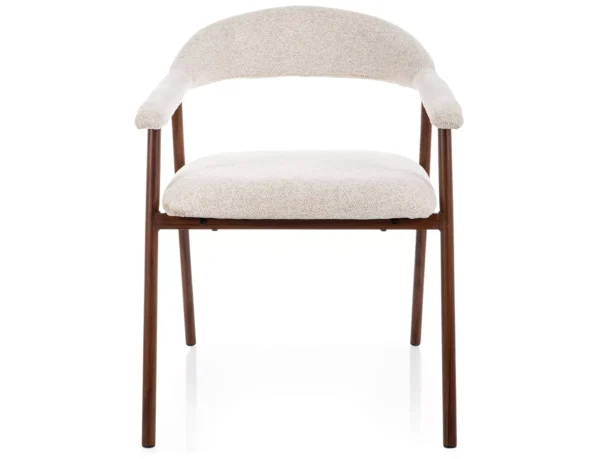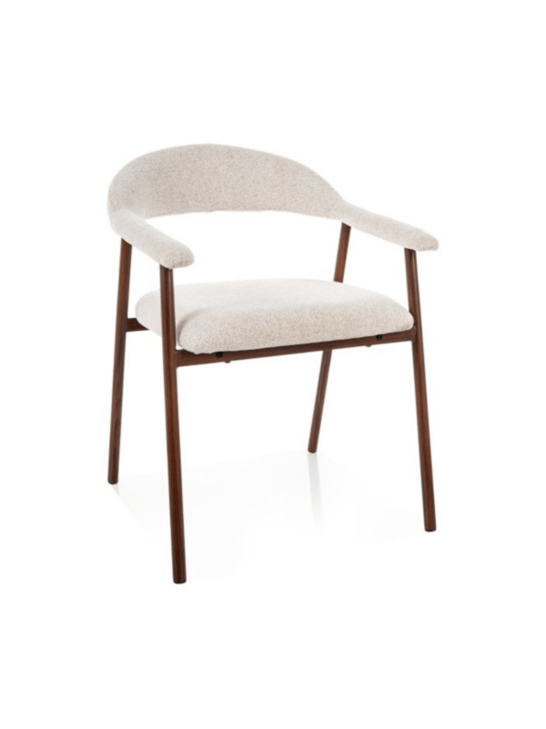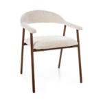 Udobni oblazinjeni nasloni za roke in elegantno, optično lahko podnožje naredijo stol Amos pravo izbiro za vašo jedilnico.