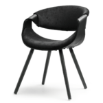 Stol Betty ne odlikuje le edinstven dizajn, temveč tudi izjemno udobje, ki ga ponuja uporabniku. Stol lahko uporabite v jedilnici, dnevni sobi, pisarni ali kot dekorativen element v poslovnem prostoru. Ne glede na to, kam ga boste postavili, bo poskrbel ne le za udobno sedenje, temveč bo celotnemu prostoru dodal eleganco in prefinjenost. Upognjen les v elegantnem odtenku črne v kombinaciji z žametom ustvarja brezčasen, minimalističen videz, ki se popolnoma prilega klasičnemu in modernemu dekorju prostora.