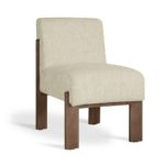 Ta izdelek lahko prilagodite svojim željam. Pregled materialov in barvJedilni stol Braga je eleganten oblazinjen stol, zasnovan za prefinjene notranje prostore. Njegova geometrijska oblika, ki jo podpirajo štiri lesene noge, ustvarja celovito obliko, odsotnost naslonov za roke pa mu daje lahek in brezčasen značaj. Možnost prilagajanja blaga in barve nog omogoča, da se ta model popolnoma poda k vsaki notranjosti.