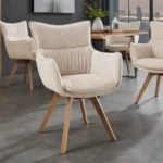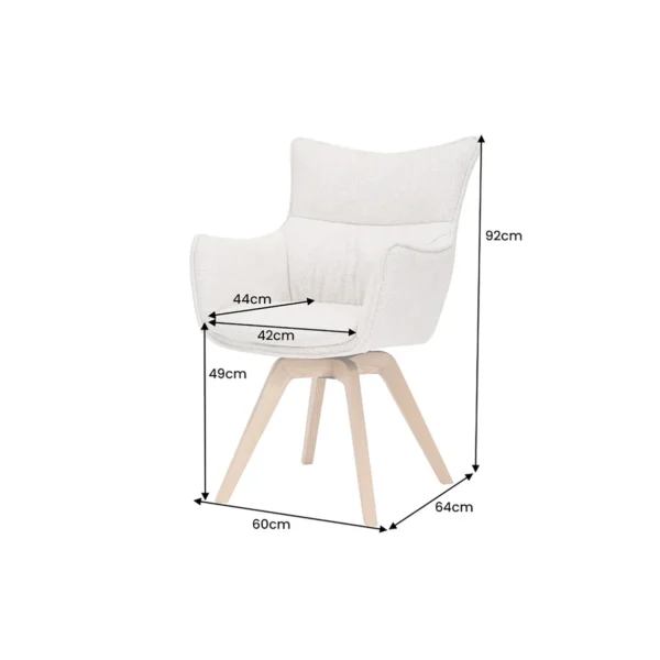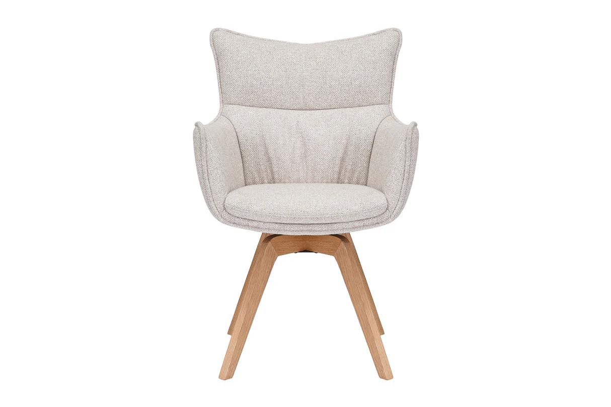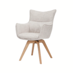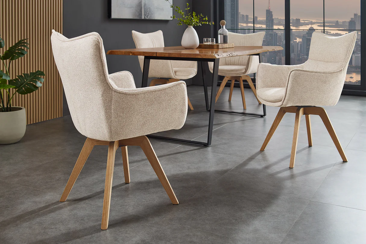 Pripravite se, da v svoj prostor vnesete svežino z vrtljivim jedilnim stolom Coco! Čudovit bež sedež se popolnoma ujema z nogami iz naravnega hrasta in daje vašemu prostoru pridih klasične elegance.