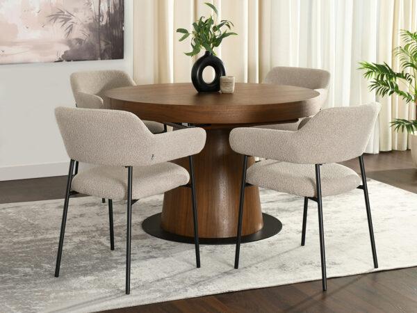 Jedilni stol Elio navdušuje s svojim brezčasnim dizajnom in se odlično poda v minimalistične, loftne in moderne interierje. Njegova preprosta oblika in privlačni materiali dodajo eleganten pridih, ki poudarja značaj prostora. Je odlična izbira za tiste, ki cenijo dober dizajn, ki temelji na ravnovesju med funkcionalnostjo in estetiko.