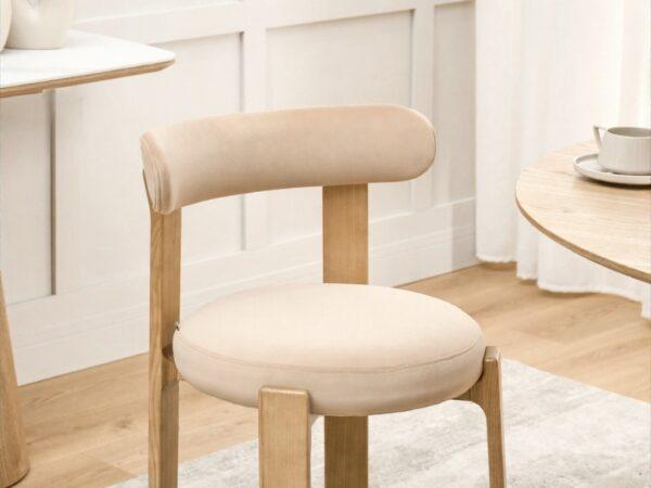 Odkrijte izjemno udobje in edinstven slog z jedilnim stolom Erica! Ta dizajnerski stol je bil ustvarjen za tiste, ki cenijo kombinacijo elegance in funkcionalnosti. Zahvaljujoč univerzalnim barvam in naravnim materialom bo Erica v vašo notranjost vnesla toplino in harmonijo ter ustvarila prijetno vzdušje.