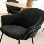Jedilni stol Gianna ponuja eleganten videz in udobje zahvaljujoč mehkemu naslonu za hrbet in roke. Trden, črn kovinski okvir zagotavlja stabilnost, minimalističen dizajn tega modela pa poudarja njegov moderen značaj.