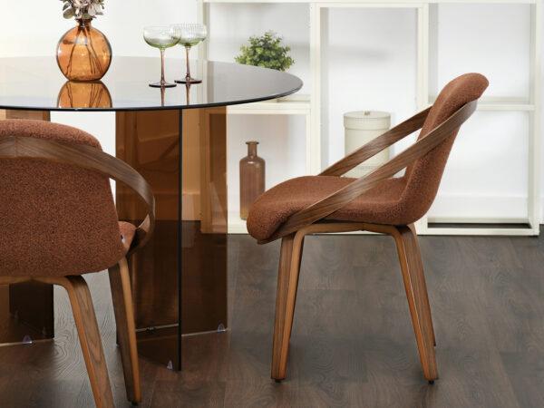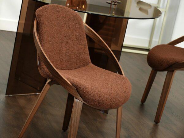Oblazinjen jedilni stol Leia je eleganten in udoben kos pohištva, popoln za različne interierje, vključno z jedilnicami in pisarniškimi prostori.