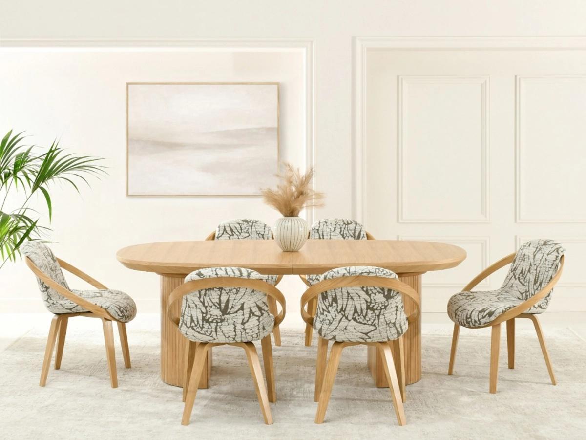 Bež jedilni stol Leia je eleganten in udoben kos pohištva, popoln za različne interierje, vključno z jedilnicami in pisarniškimi prostori.