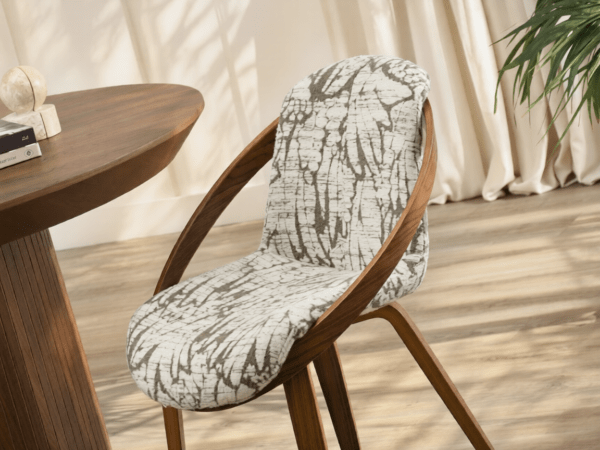 Jedilni stol Leia je navdihnjen z maksimalističnim slogom in se brezhibno prilega sodobnemu okolju. Ekscentričen kremno siv vzorec in naravno orehov podnožje ustvarjata harmonično celoto, ki bo dopolnjevala prostore v toplih odtenkih.