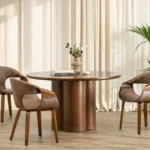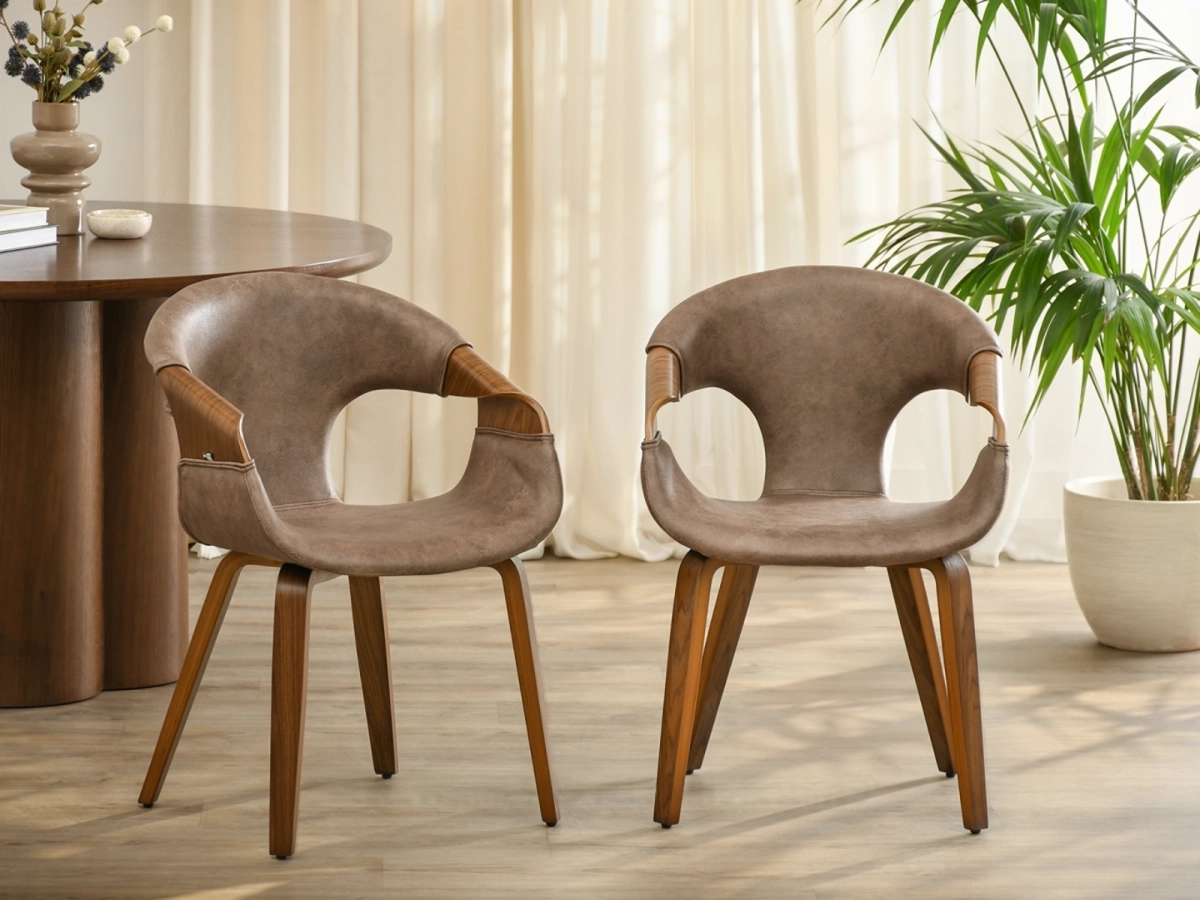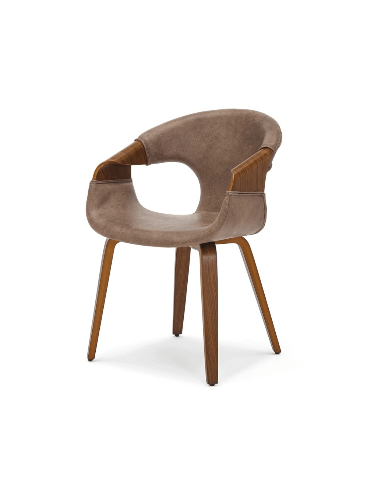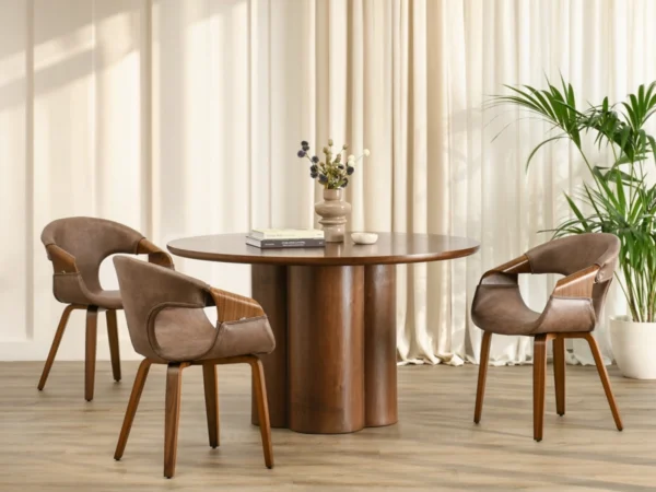 Jedilni stol Linus je izdelan iz visokokakovostne tkanine, podobne usnju, v vintage slogu, kar mu daje edinstven, rahlo staran značaj. Ta tkanina ima subtilne praske, ki stolu dajejo značaj in občutek pristnosti.