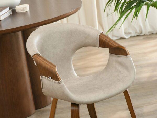 Jedilni stol Linus je izdelan iz visokokakovostne tkanine, podobne usnju, v vintage slogu, kar mu daje edinstven, rahlo staran značaj. Ta tkanina ima subtilne praske, ki stolu dajejo značaj in občutek pristnosti.