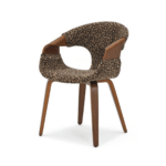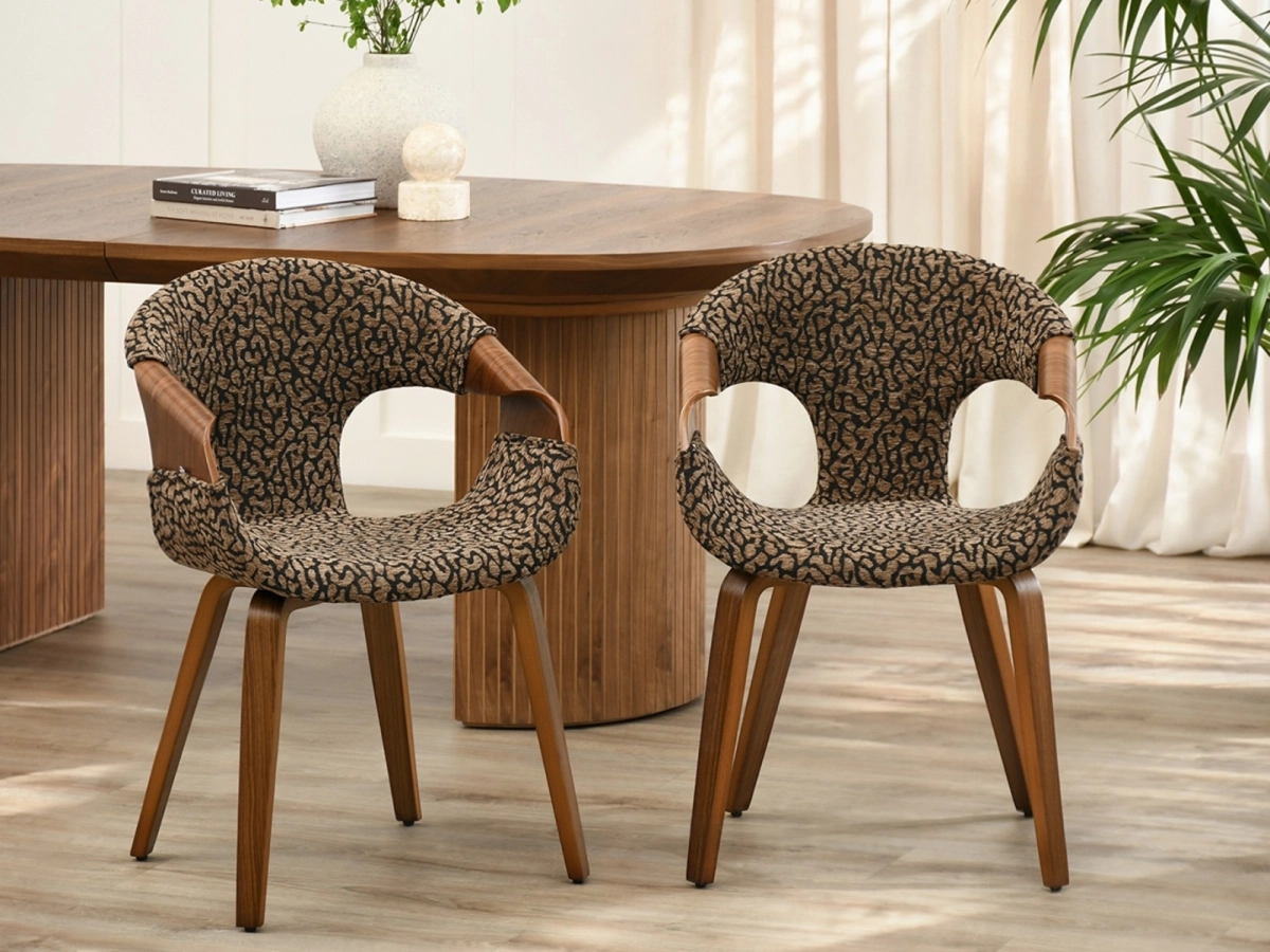 Jedilni stol Linus bo pritegnil pozornost s svojim presenetljivim leopardjim vzorcem z rjavimi pikami na temno črnem ozadju, ki bo v jedilnico vnesel presenetljiv dekorativni element.