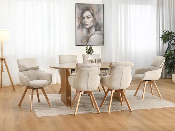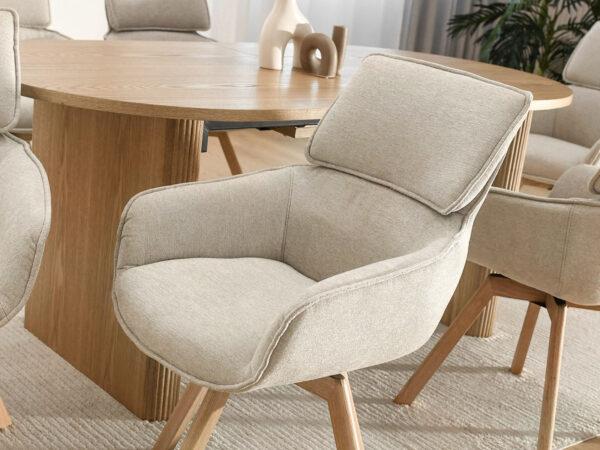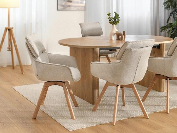 Kot že ime pove, je jedilniški stol Malmo klasičen skandinavski stol, oblazinjen v bež tkanino. Zahvaljujoč dodatni funkciji vrtenja sedeža je idealen tudi za pisarno.