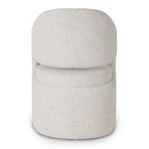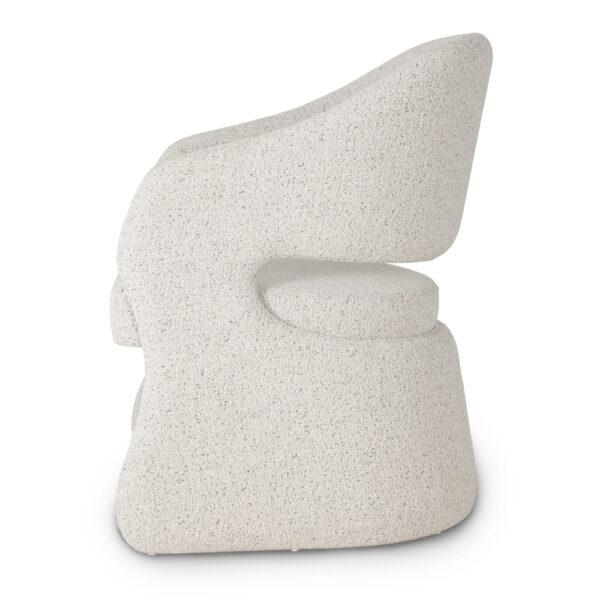 Jedilni stol Menorca je edinstven model s kiparsko, moderno obliko. Struktura tvori kohezivno obliko, ki jo podpira obrnjena noga v obliki črke U, ki gladko teče v naslonjala za roke in naslonjalo. Subtilna odprtina med naslonjalom in sedežem daje obliki lahkotnost in poudarja značilen slog stola.